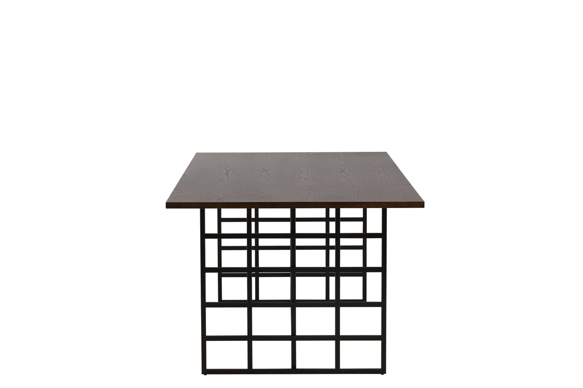 Matbordet Ystad imponerar med sin modemedvetna design! Detta trendsäkra matbord har en vacker brunfärgad, rektangulär bordsskiva i MDF med ekfanér och två dekorativa stommar i svart metall med industriell design. Det här matbordet är perfekt om du vill skapa en inbjudande atmosfär i ditt hem. Matcha med ett par bekväma matstolar så får du den perfekta kombinationen av stil och komfort!