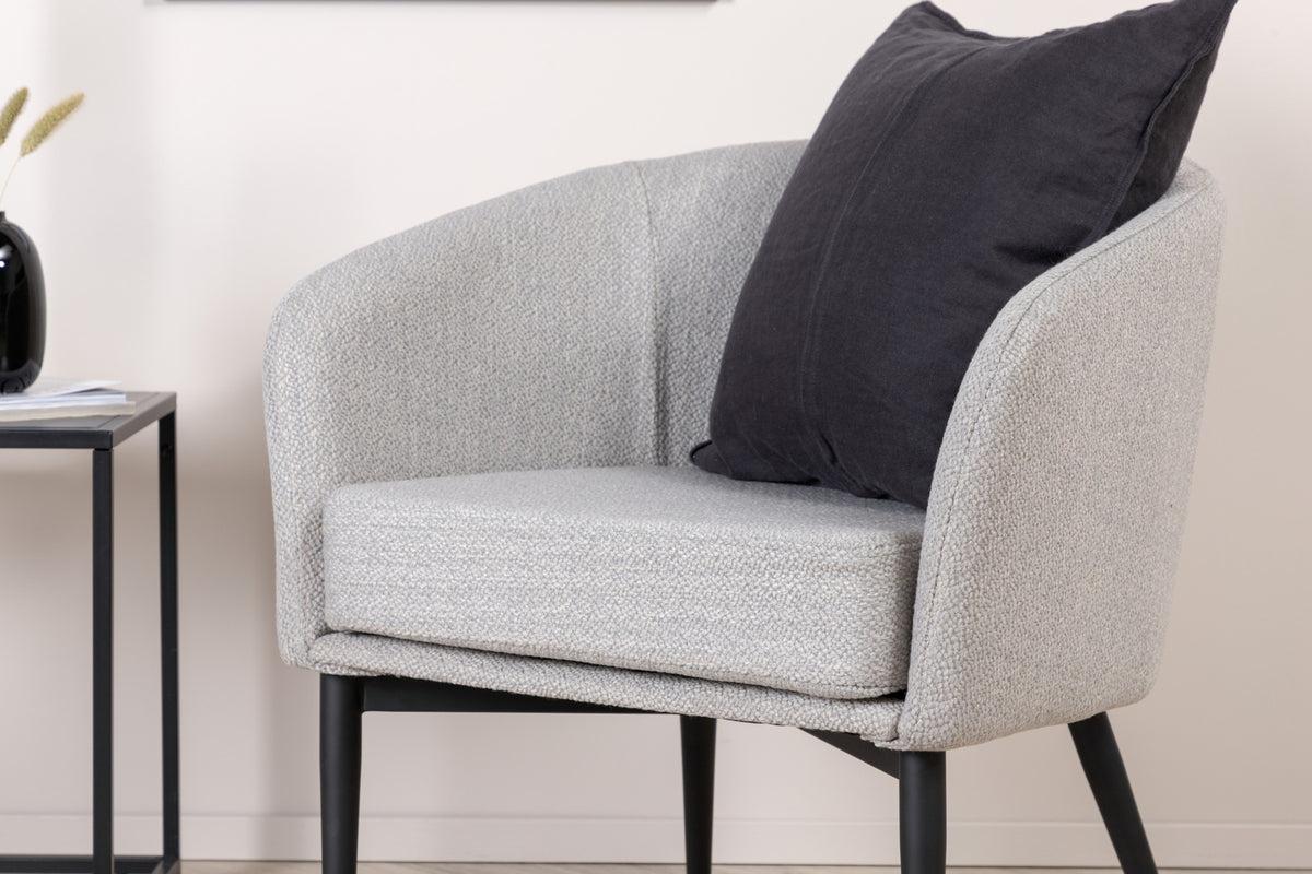 En modern fåtöljdröm från serien Fluffy i stilren grå kulör blir garanterat ett populärt tillskott i hemmet! Den här stolen har en helklädd design med lätt rundad rygg och sits i polyesterlinne och smala ben i svart järn – garanterat lika bekväm som iögonfallande. Möblera vardagsrummet inbjudande och trivsamt med en läcker stilikon njut av härlig avkoppling!