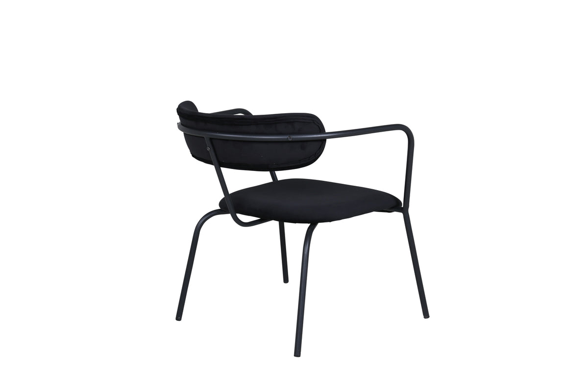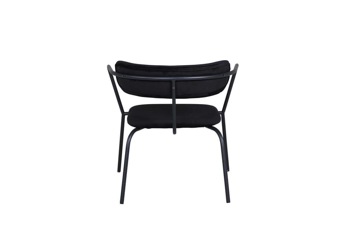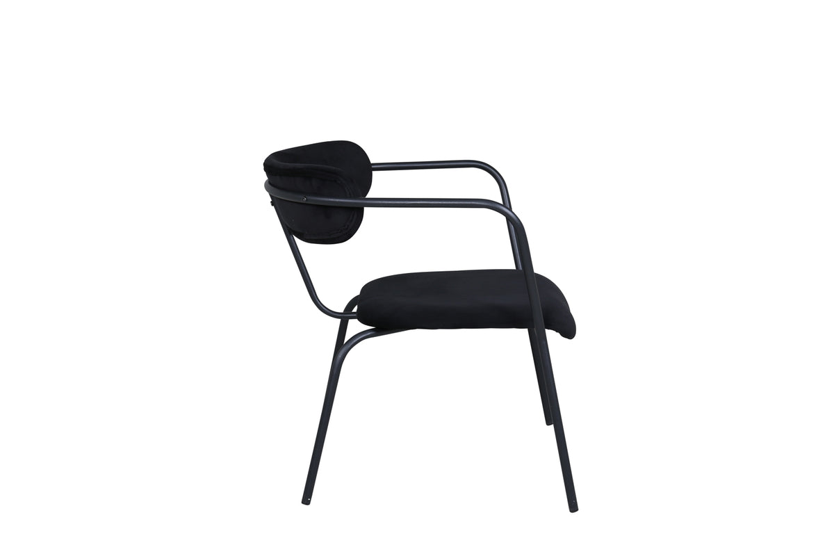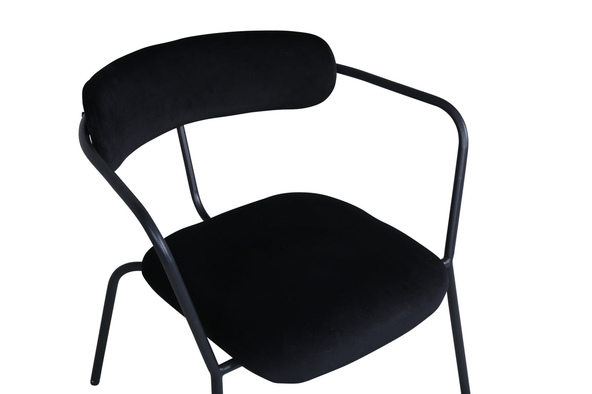Ryggen är lätt rundad i samma material som sitsen, svart sammetstyg som är stoppad för extra komfort. Inred ditt hem med en fåtölj designad helt efter trenderna!