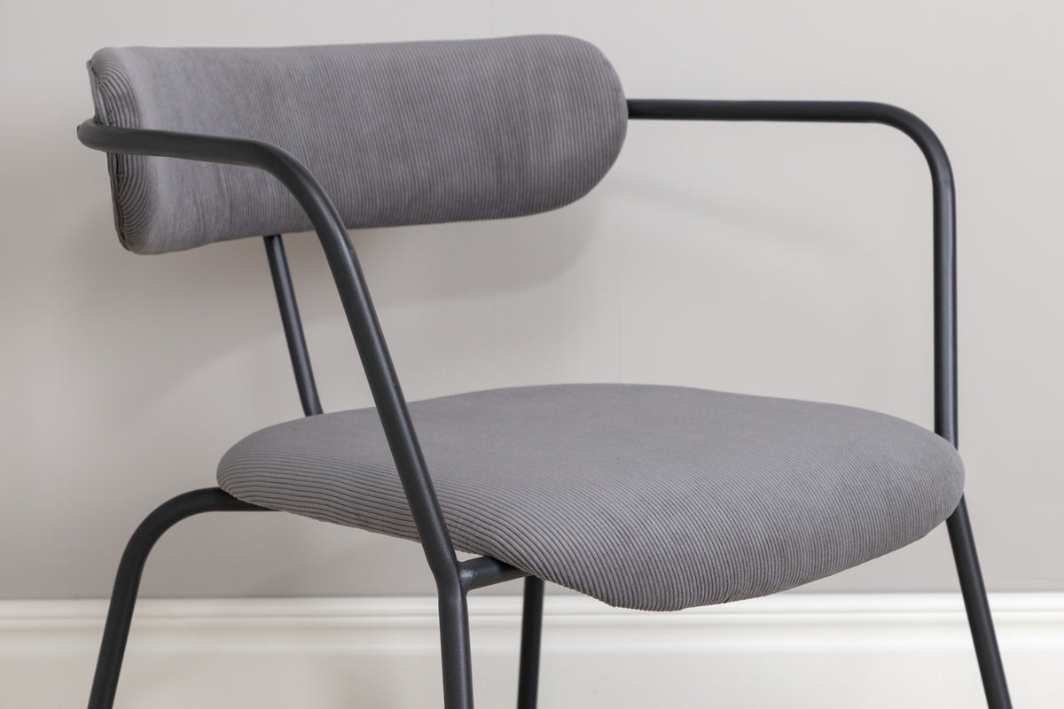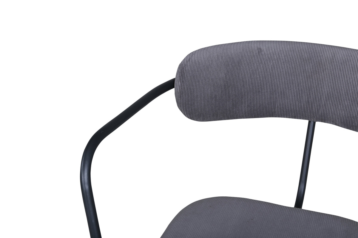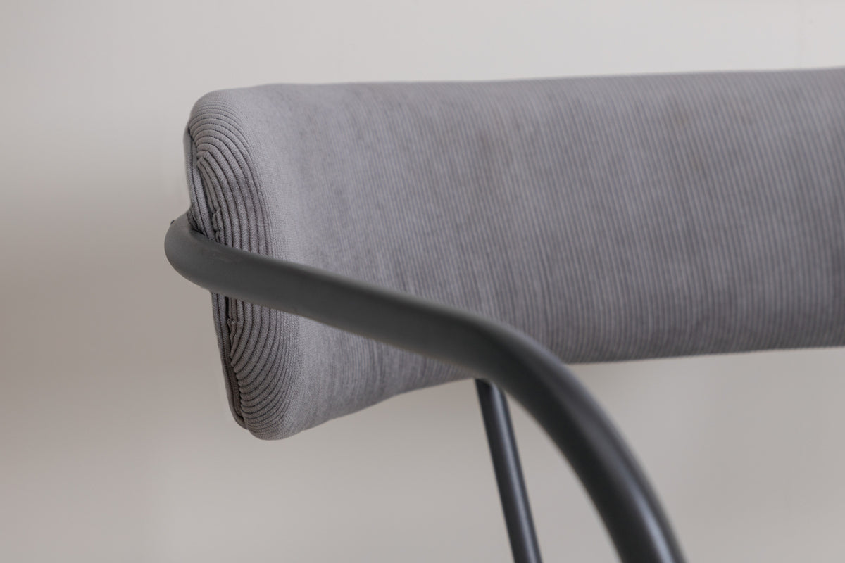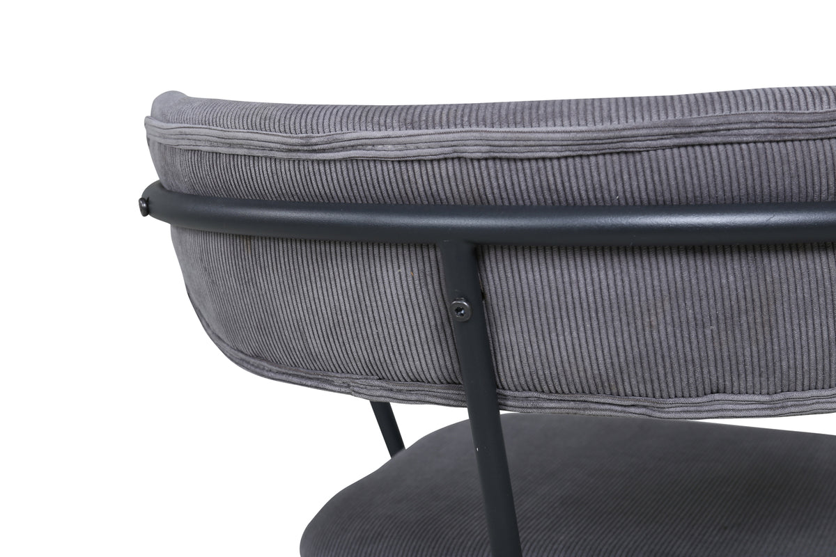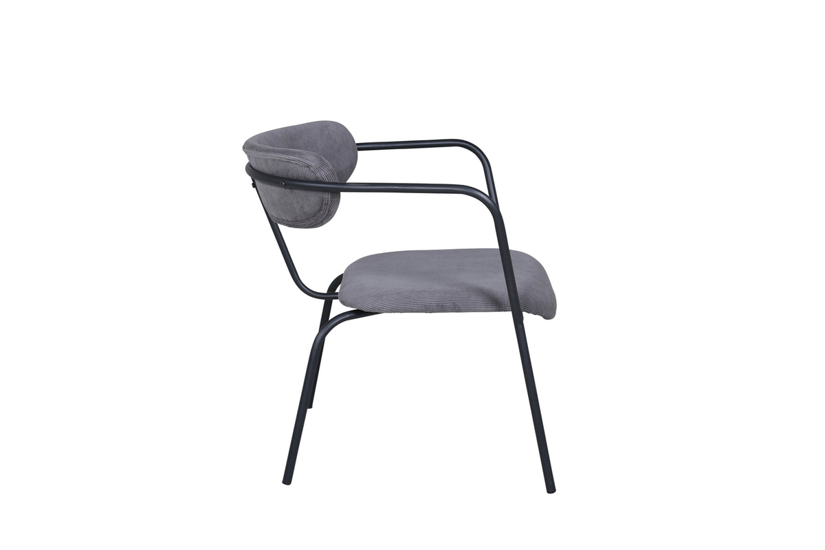 Skapa en modemedveten atmosfär med en fåtölj från serien Duffy! Lika stilren som praktisk fungerar den utmärkt som extra sittplats eller ensam som stilikon. Duffy har en minimalistisk design med stomme, ben samt integrerade armstöd i svart pulverlackerad metall. Ryggen är lätt rundad i samma material som sitsen, grått manchestertyg som är stoppad för extra komfort.