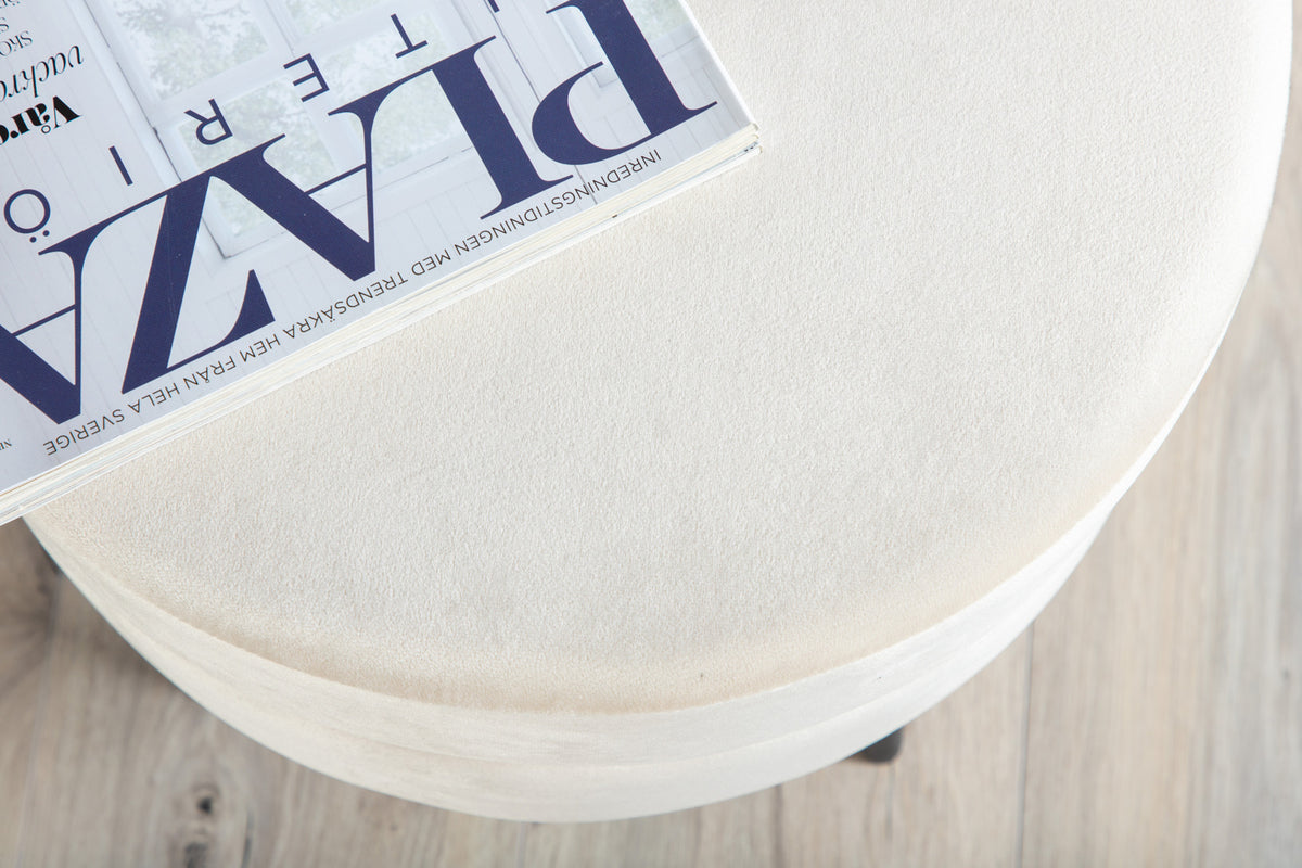Sittpuffen/fotpallen Pot skapar snabbt en inbjudande atmosfär i hemmet! I sin läckra benvita kulör och sammetslena tyg ger den ett varmt och stilrent intryck till rummet den placeras i.
