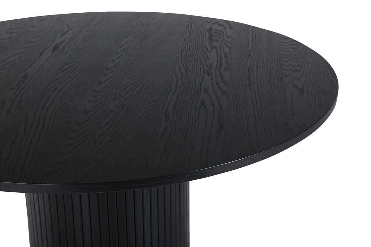 Skapa en härlig gemenskap kring vårt runda matbord Bianca i modemedveten design! Bordsskivan är tillverkad i MDF och har en cylinderformad stomme i robust utformning och ribbad design. Den genomgående svarta kulören är lika tidlös som snygg och enkel att matcha med övrig inredning. Förhöj inredningskänslan och låt tiden här bli till en av dagens höjdpunkter!
