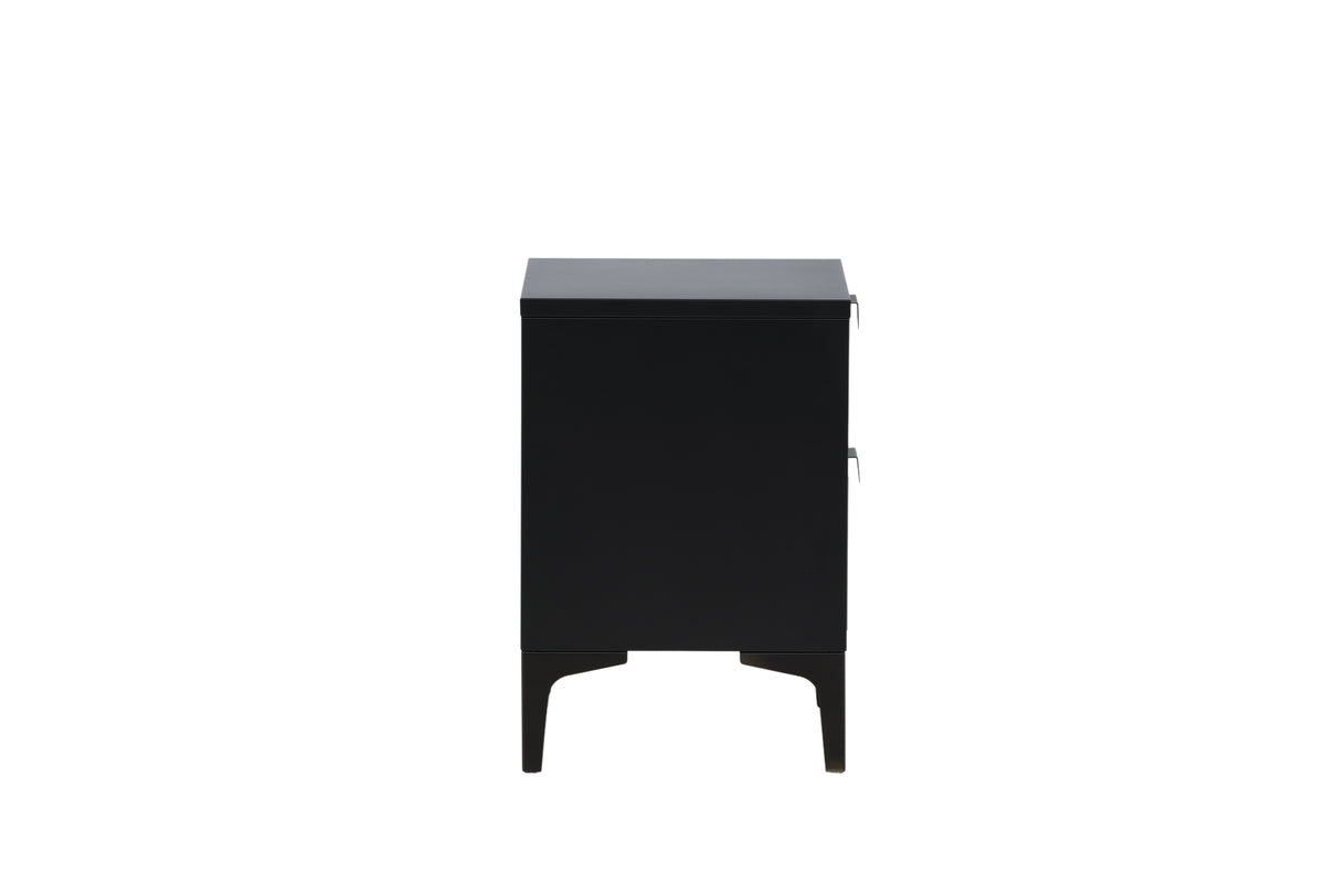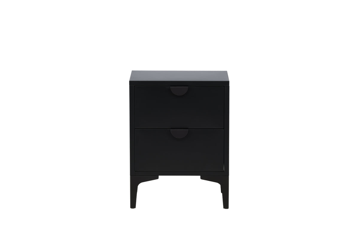 Sängbord i serien Piring är perfekt som förvaringslösning! Det kvadratiska sidobordet i svart stål har två lådor för dold förvaring och stilren ovansida med lagom plats för en sänglampa, en bra bok och eventuell prydlig inredningsdetalj för modern look.