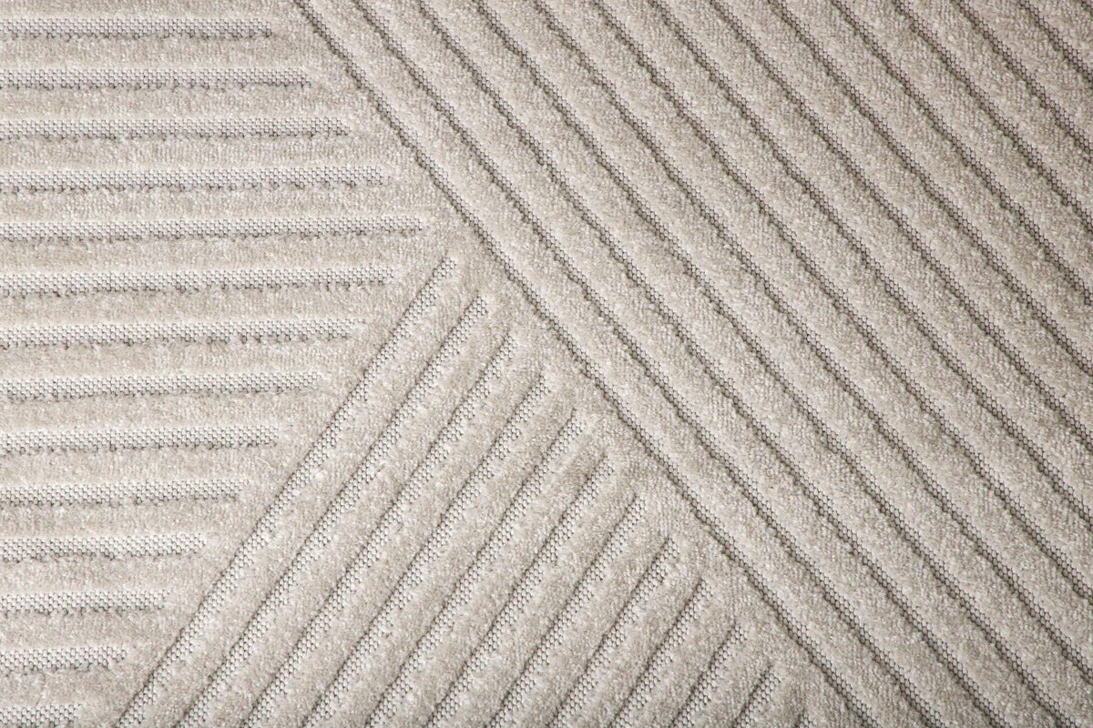 Den här rektangulära mattdrömmen i krämig beige nyans har en praktisk låg lugg som möjliggör enkel skötsel och ett modernt linjerat mönster som ger liv och värme till rummet. Placera under soffan eller i sovrummet - där den får den uppmärksamhet som den förtjänar och värmer kalla fötter bäst!