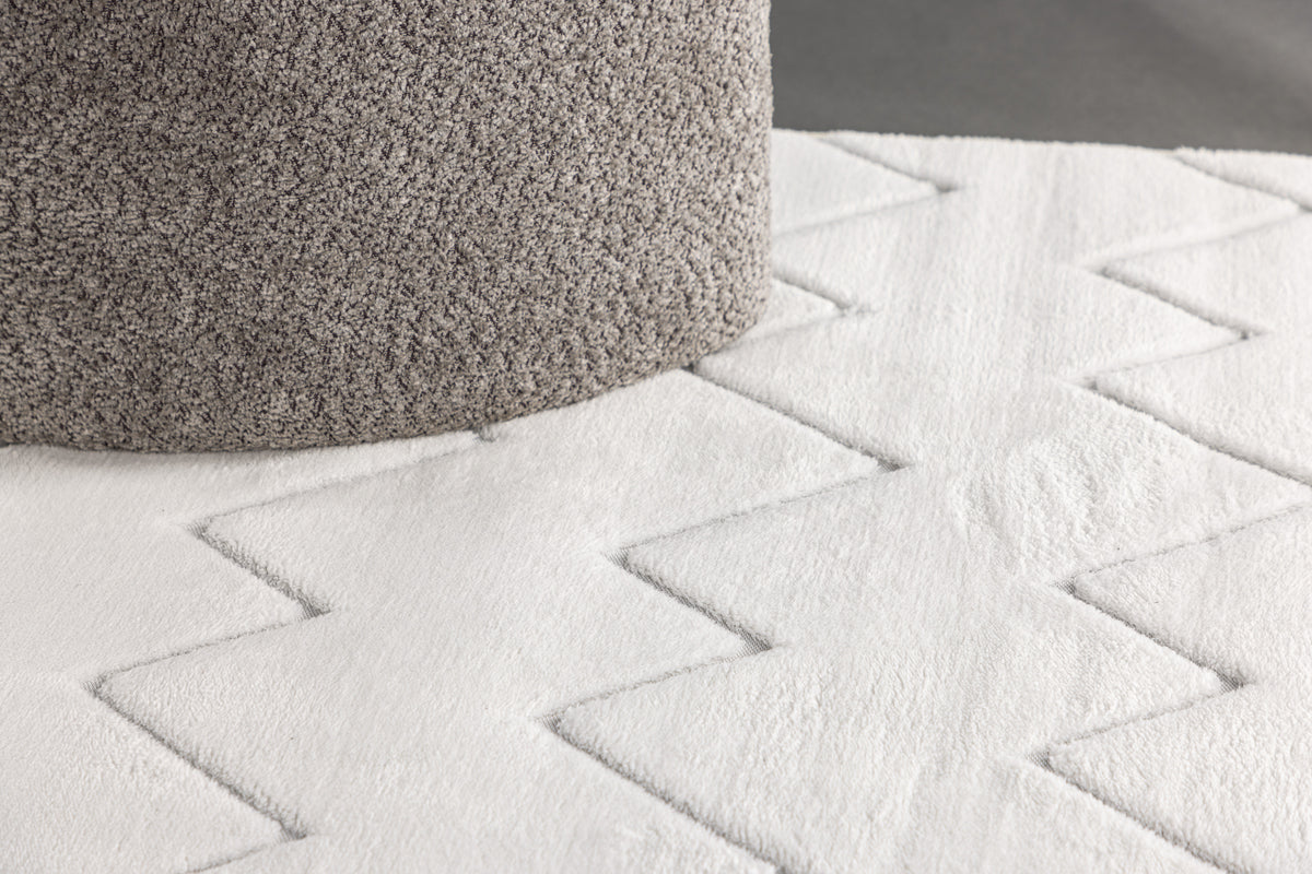 Denna stilrena vita matta är designad för att passa perfekt in i moderna heminredningar, och den kommer definitivt att ge en touch av sofistikation till ditt rum. Med sitt distinkta zick-zack mönster är Fia inte bara ett funktionellt tillskott utan också en inredningsdetalj som förhöjer estetiken i vilket rum som helst. mattan har en kort lugg, vilket gör den lätt att rengöra och hålla fri från ludd och damm.