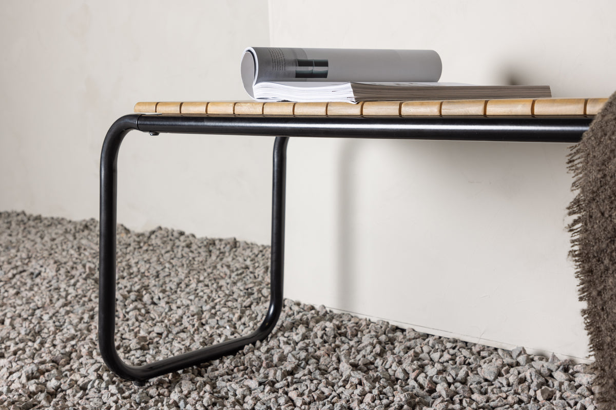 Den här bänken från serien Holmbeck har allt du behöver - stilren, slitstark och smart! Bänken har en ribbad bänkskiva i smakfull acacia och en smala ben i svart stål.