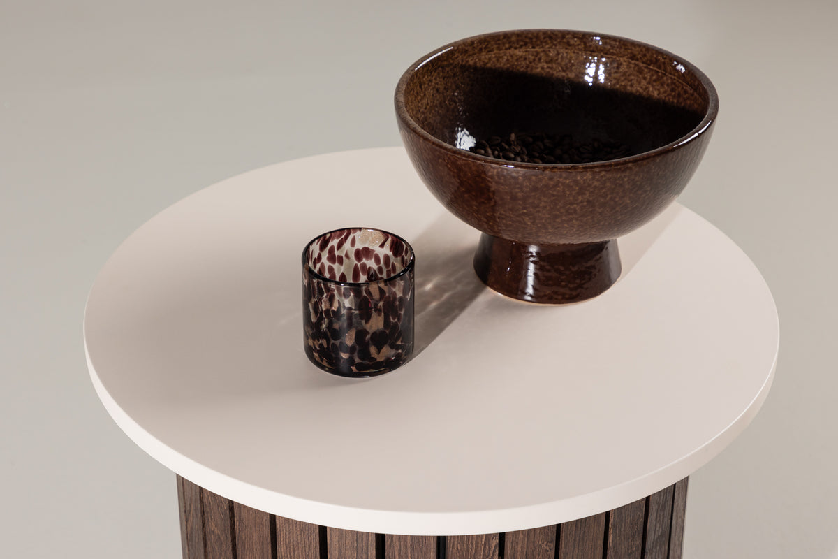 Produkten är FSC®-certifierad (FSC®C177288) vilket innebär att den består av trä som kommer från ett ansvarsfullt skogsbruk, ett skogsbruk som tar hänsyn till människor och miljö. Skapa en varm och inbjudande atmosfär i ditt hem med sidobordet Visingsö. Med sin runda form och generösa dimensioner på 52 cm i diameter och 44 cm i höjd är Visingsö sidobordet en mångsidig möbel som passar perfekt bredvid din soffa eller favoritfåtölj. Bordsskivan i beige MDF ger en jordnära känsla, medan stommen i mörkbrunt stål ger en modern kontrast. Visingsö sidobordet är mer än bara en praktisk möbel – det är en inredningsdetalj som förhöjer rummets atmosfär och skapar en ombonad känsla. Oavsett om det används för att placera en bok, en kopp te eller som en plats för dina favoritdekorationer, kommer Visingsö att lägga till en varm och välkomnande touch till ditt hem.