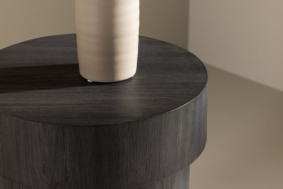 Produkten är FSC®-certifierad (FSC®C177288) vilket innebär att den består av trä som kommer från ett ansvarsfullt skogsbruk, ett skogsbruk som tar hänsyn till människor och miljö. Introducerar Malung - det stilrena sidobordet som lyfter ditt heminredningsspel till nya nivåer av modern elegans. Med en diameter på 35 cm och en höjd på 45 cm passar detta sidobord perfekt bredvid din favoritfåtölj eller soffa för att ge en praktisk och stilfull förvaringslösning. Tillverkat av svart MDF, strålar Malung med en minimalistisk design som ger en sofistikerad touch till varje rum. Med dess enkla och eleganta utseende kan det här sidobordet enkelt passa in i olika inredningsstilar och bidra till att skapa en modern och snygg atmosfär. Oavsett om det används för att placera en bok, en kopp kaffe eller en dekorativ ljusstake, är Malung sidobordet en oumbärlig inredningsdetalj som inte bara ger funktionalitet utan också en känsla av stil och stilnivå till ditt hem.