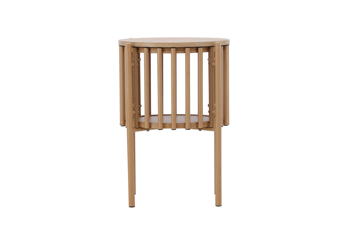 Rubbo sidobord är en del av serien Rubbo, känd för sin avskalade och tidlösa skandinaviska design. Det runda bordet kombinerar form och funktion på ett harmoniskt sätt och passar lika bra som ett komplement till soffgruppen som ensam accentmöbel i rummet. Tillverkat i en naturlig trälook förmedlar Rubbo en varm och jordnära känsla. Den ribbade designen ger bordet ett stilrent uttryck med tydlig karaktär, samtidigt som de fyra benen är diskret integrerade i strukturen – vilket skapar ett enhetligt och elegant helhetsintryck. Rubbo sidobord är perfekt för dig som uppskattar skandinavisk formgivning med ett modernt uttryck och naturliga materialtoner.