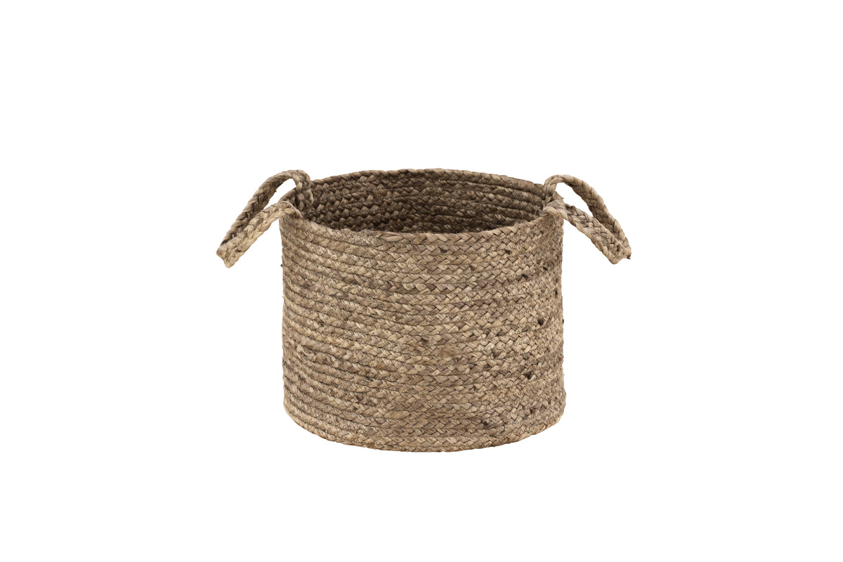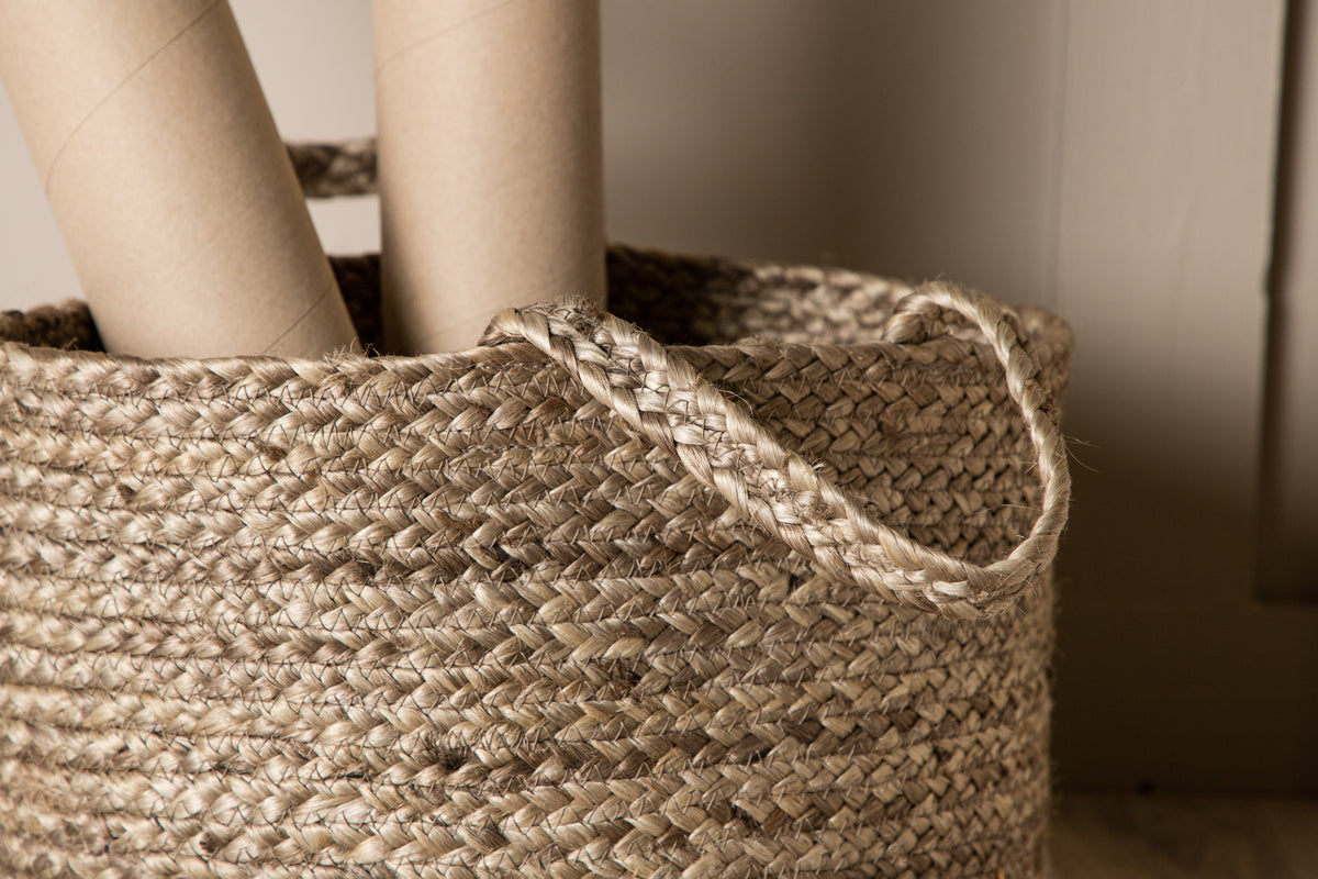 Bhopal är vår fina förvaringskorg i grovflätad jute! Den här fina korgen har praktiska handtag och flera användingsområden om fantasin tillåter; använd som förvaring för filtar, handdukar eller som kruka till dina gröna växter. Korgarna är dock inte vattentäta så placera då växterna i en fuktsäker innerkruka först.