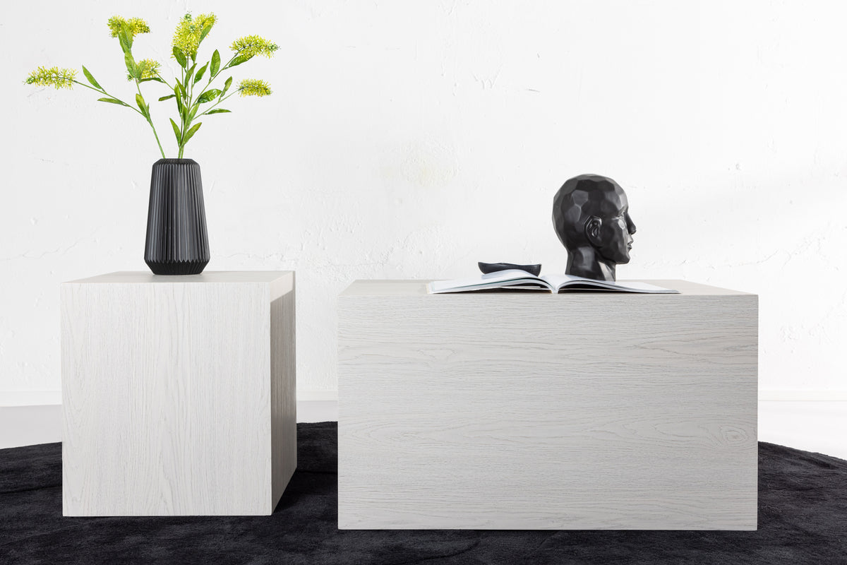 Båda borden i York-duot är tillverkade av MDF-material, vilket garanterar både hållbarhet och stabilitet. Med deras eleganta vita yta passar de perfekt in i olika inredningsstilar och ger en tidlös estetik till ditt hem.