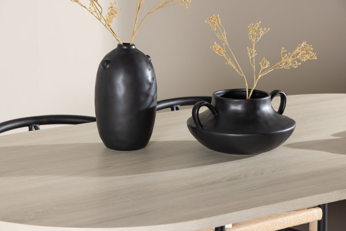 Komplettera ditt matbord med Alfons matstolar, som kombinerar stil och funktionalitet på ett elegant sätt. Med en sits i beige rotting och en ram tillverkad i svart stål, ger Alfons en tidlös och klassisk känsla till ditt matbord. Stolarna erbjuder inte bara en bekväm plats att sitta och njuta av dina måltider, utan också en möjlighet att skapa gemenskap kring bordet. Den robusta konstruktionen och det gedigna materialet gör att Alfons är redo att stå emot många middagar och samlingar framöver. Med sin stilrena design passar Alfons in i olika inredningsstilar och ger en touch av elegans till ditt hem.