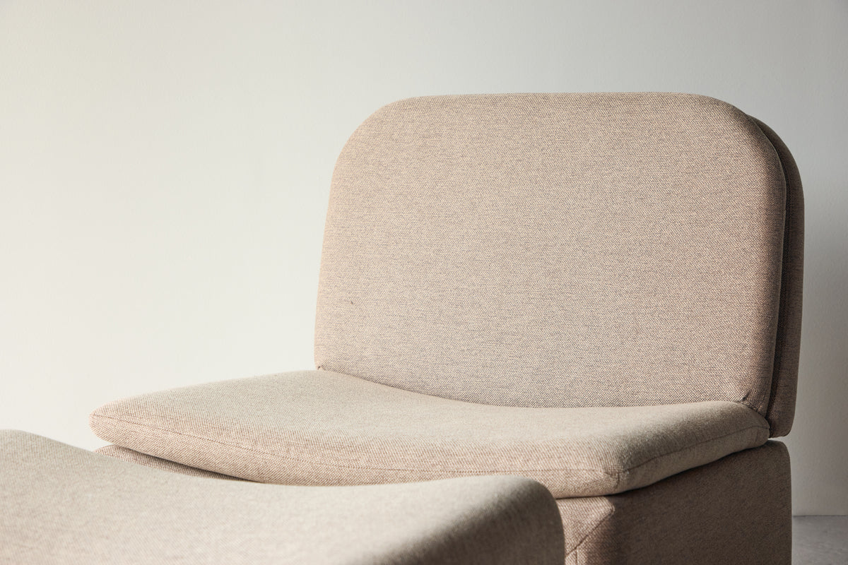 Den genomtänkta formen skapar en harmonisk balans mellan estetik och funktion, medan den medföljande pallen ger extra stöd för avslappning. Perfekt för långa stunder av lugn, oavsett om du vill njuta av en god bok eller bara varva ner efter en lång dag.