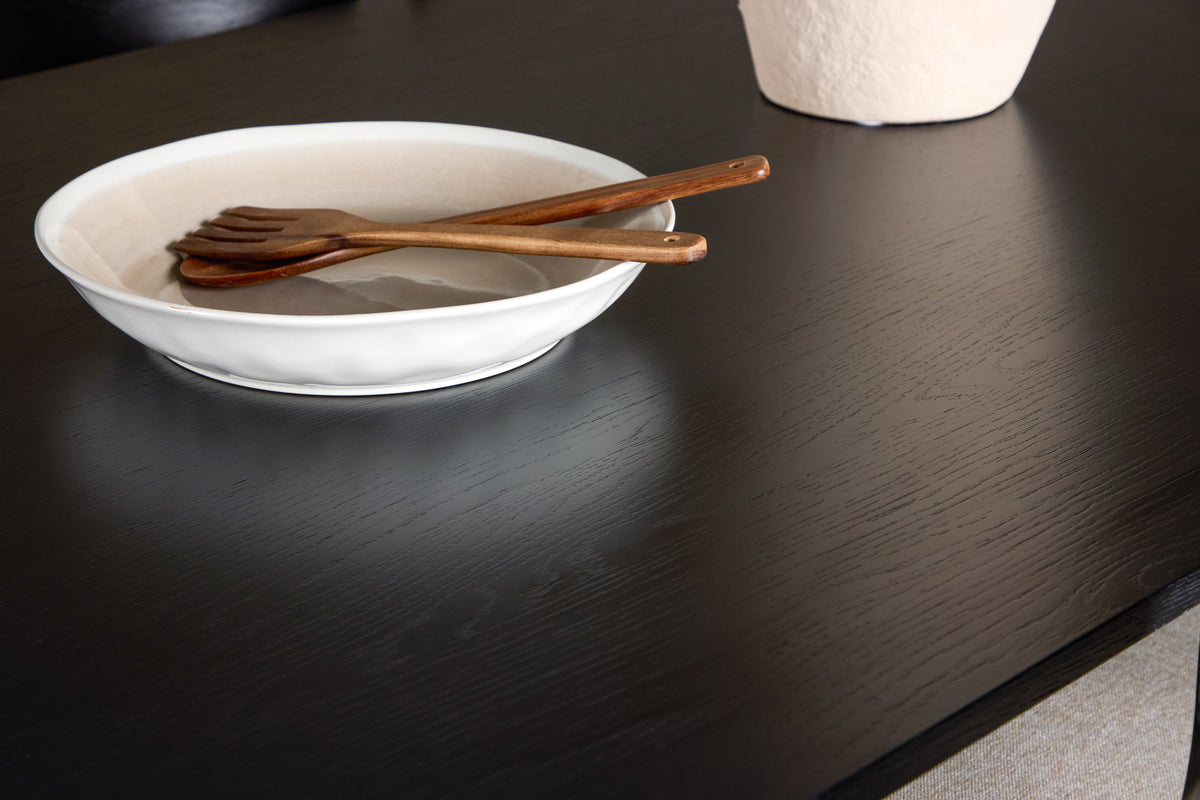 Skapa en modern och inbjudande matplats med Tyresö & Ven, en matgrupp som kombinerar stilren design med praktisk funktion. Det rektangulära Tyresö-bordet har mjukt rundade kanter och en elegant svart finish, vilket ger ett kraftfullt och sofistikerat uttryck.